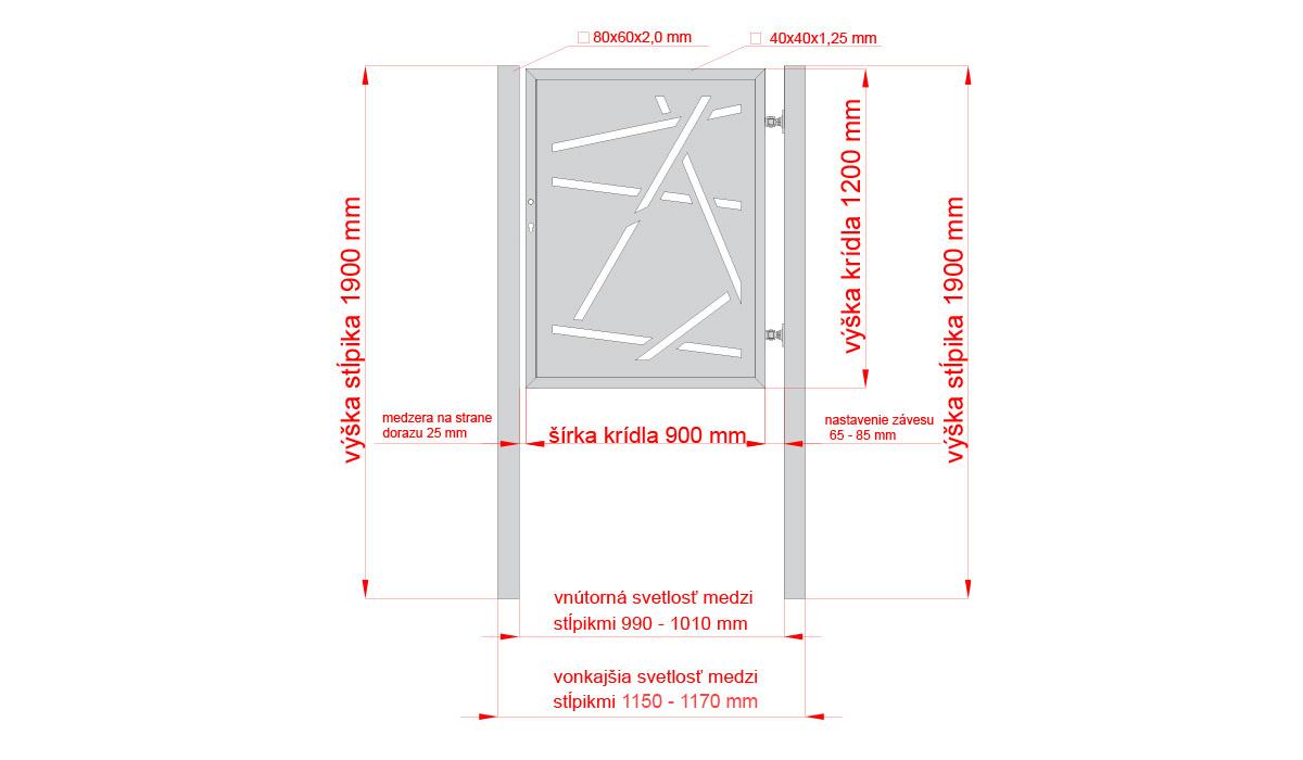 Design single gate HALEN 1000x1200mm with posts black matt