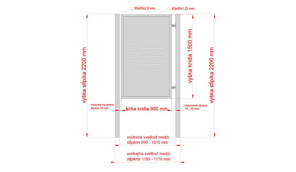 Design single gate LINE 1000x1500mm with posts black matt