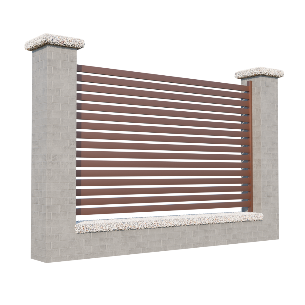 Installation of this modular aluminum fencing is simple and flexible. Sets of slats can be installed between posts for free-standing panels or between profiles for wall or wall-mounting. The connecting material at the end of the slat helps to reinforce the entire structure.