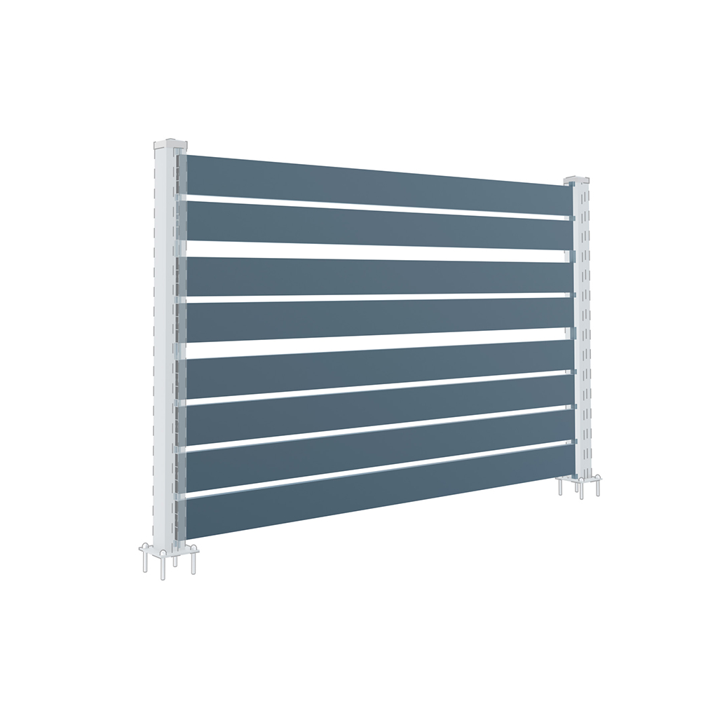 Installation of this modular aluminum fencing is simple and flexible. Sets of slats can be installed between posts for free-standing panels or between profiles for wall or wall-mounting. The connecting material at the end of the slat helps to reinforce the entire structure.