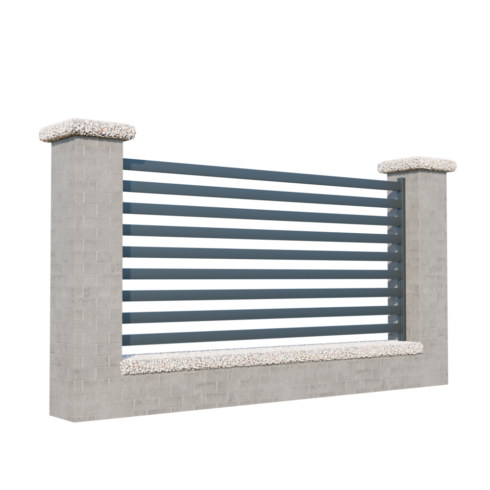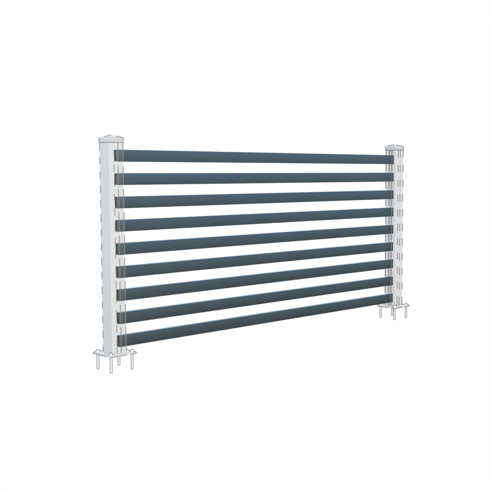 Installation of this modular aluminum fencing is simple and flexible. Sets of slats can be installed between posts for free-standing panels or between profiles for wall or wall-mounting. The connecting material at the end of the slat helps to reinforce the entire structure.