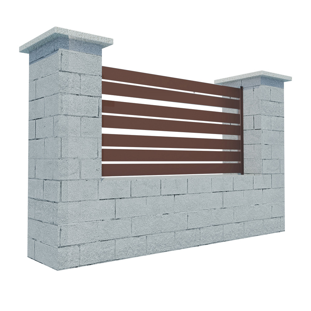 Installation of this modular aluminum fencing is simple and flexible. Sets of slats can be installed between posts for free-standing panels or between profiles for wall or wall-mounting. The connecting material at the end of the slat helps to reinforce the entire structure.