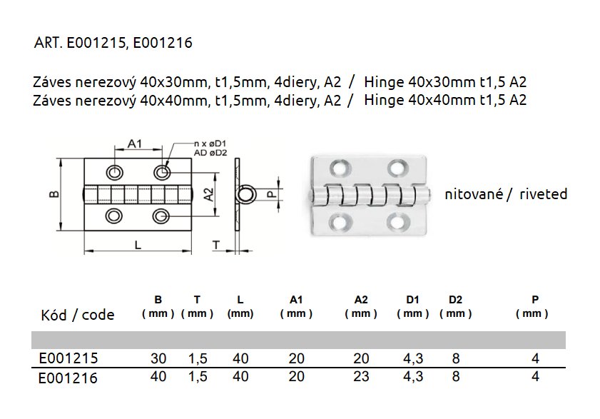 Hinge 40x30mm t1,5 A2