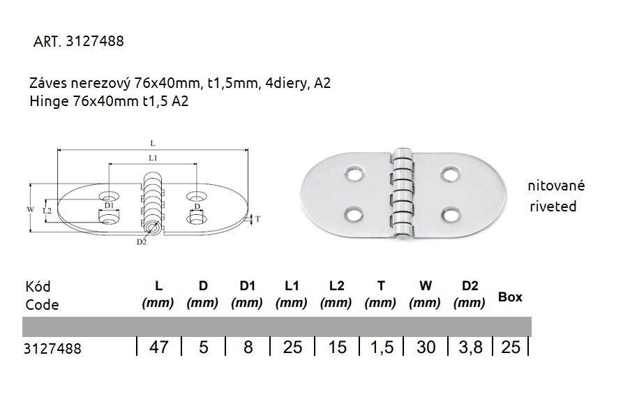 Hinge 76x40mm t1,5 A2