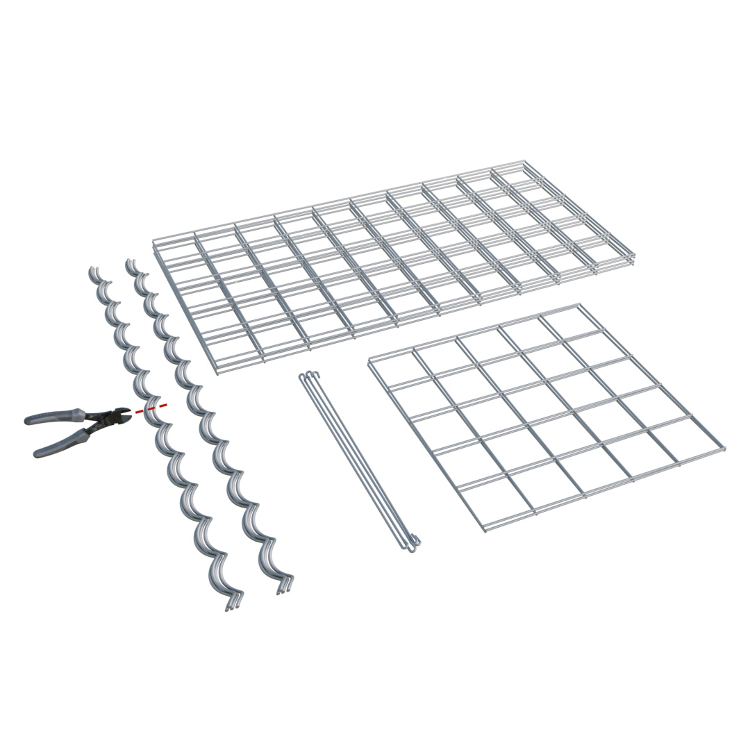 The set includes nets and accessories for a gabion basket with dimensions (w*h*d) 100x50x50cm